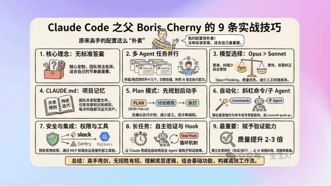 - 《Claude Code 之父 Boris 的 9 条实战技巧:原来高手的配置这么“朴实无华”》Anthropic内部被称为“Claude Code之父”的Boris Cherny,在X上分享了9条Claude Code的实战技巧。从他的分享可知,Claude Code没有固定套路,适合自己的用法才是最佳。无论是多任务并行提高效率,还是选对模型、利用特殊配置文件积累知识,亦或是通过多种方式实现自动化与验证,都能助力高效使用。这些技巧简单实用,新手也能快速上手,快来解锁Claude Code的强大功能吧!