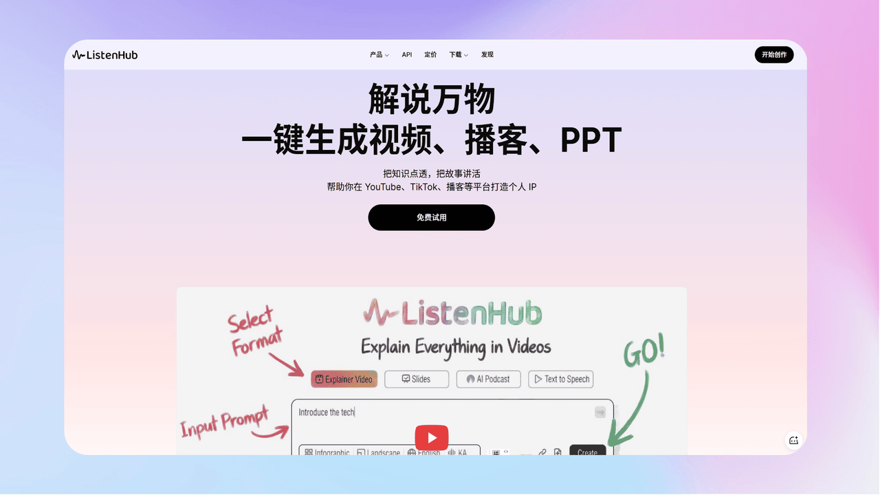 - 《Day 2 教你用: Listenhub API混搭大模型 API手搓一个好用的 Skills 》晚8点共学特别企划:Skills爆改训练营第2课为大家讲解了Skills原理,还介绍了准备工作与创建方法,借助官方skill-creator就可以打造专属Skill。臧师傅也分享了独家动效PPT的生成技巧+使用教学+创作思路,不容错过!值得一提的是,功能强大的Listenhub Skills今晚上线,春节优惠多多,还有社区专属折扣。如果有疑问,快来周五晚8点的自习室开麦提问。