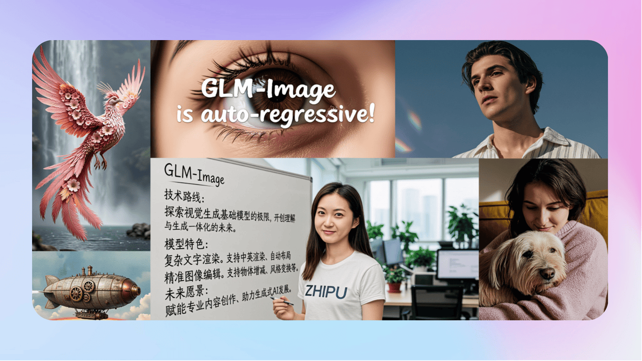 - 《国产开源GLM-Image实测:文字渲染登顶SOTA,画面质感仍是最大瓶颈丨302.AI 基准实验室》想知道国产开源图像模型GLM-Image的真实实力?这篇实测带来关键参考!作为首个在国产芯片完成全流程训练的模型,它凭借“文字渲染开源第一”的优势,在人物拟真、信息卡片、产品海报等商用文生图场景中表现亮眼,精准图文排版需求能被很好满足。不过实测在画面质感、艺术创作上仍落后顶尖模型。