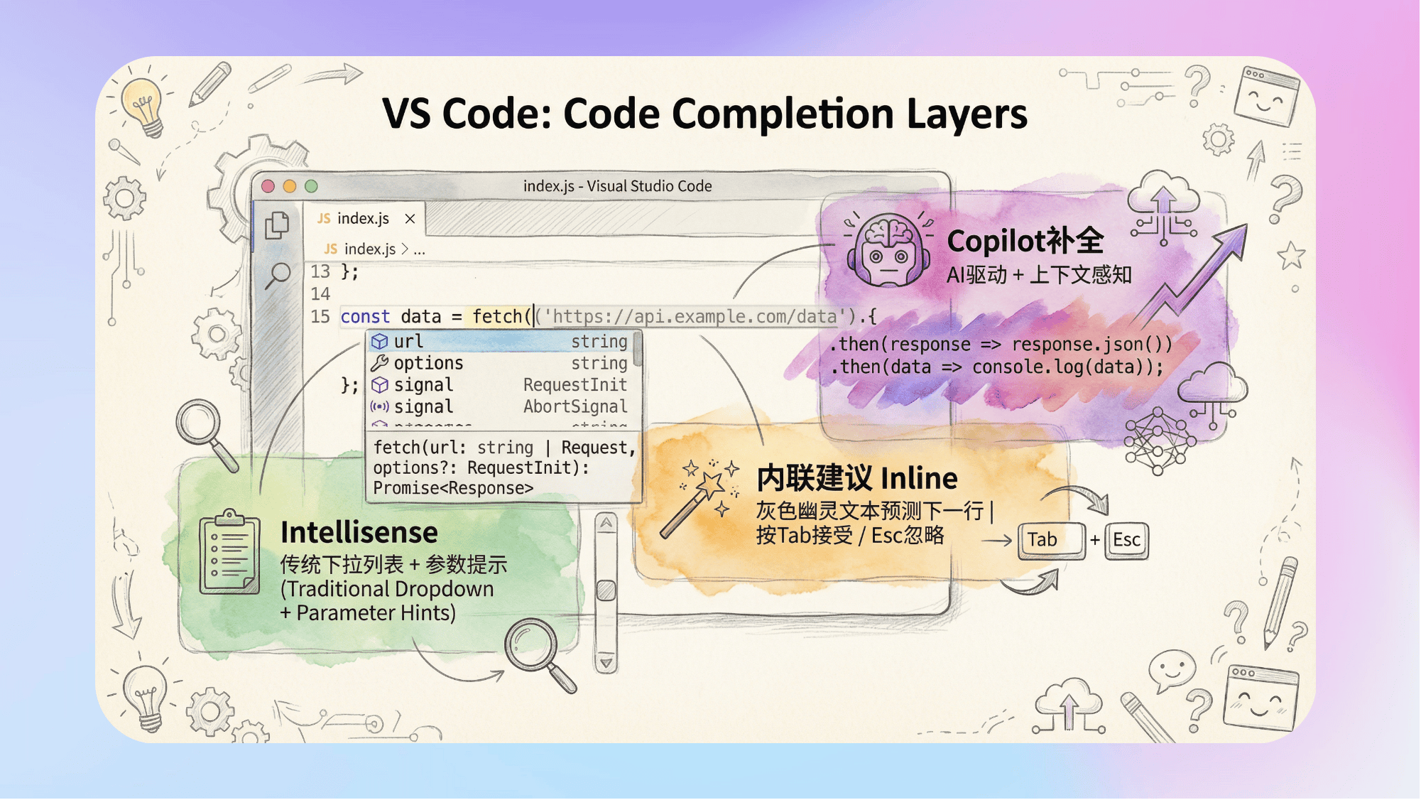 - 《AIGC浩然学长:Visual Studio Code 2026 新手快速了解》2026版VS Code已经进化成AI驱动的全能开发工具,这份新手笔记帮你快速吃透核心功能。从界面布局、高频快捷键到内置浏览器等一系列基础操作轻松上手;Copilot Chat三档AI模式搭配预测流重构,可以大幅提升编码速度;深度集成GitHub,可以支持AI自动提交与一键发布。作者的这篇学习路径,小白也能快速上手全功能。