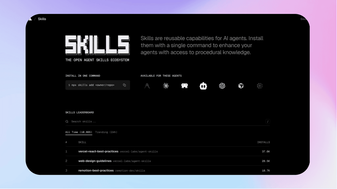 - 《Skills商店来了:5万人在用的Top 10热门Skills,我帮你试了一遍》Vercel打造的Claude Skills应用商店skills.sh太香了!不用自己写代码,一键安装就能解锁各类现成Skill,社区按安装量来进行排雷,优质实用款直接挑。Top10含7个开发者专属、3个全岗位通用款,还能挖到23个营销技能包。不仅能直接提升办公、开发效率,还能通过解读优质Skill快速学会搭建专属工作流,按岗位选装,轻松让 Claude 成为专属高效助手。