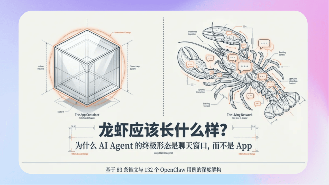 - 《龙虾实际产品形态预测——龙虾生态创业者必读系列》OpenClaw的正确形态从不是独立App,而是嵌入Telegram等常用聊天工具,以多专业Agent分工协作的模式运作,搭配总管调度与统一记忆,主动汇报替代被动指令,大幅提升交互价值。当前跨Agent记忆共享是最大短板,却也是创业者的黄金赛道。看懂这套架构逻辑,或许你也能提前布局Agent协同的下一波红利。