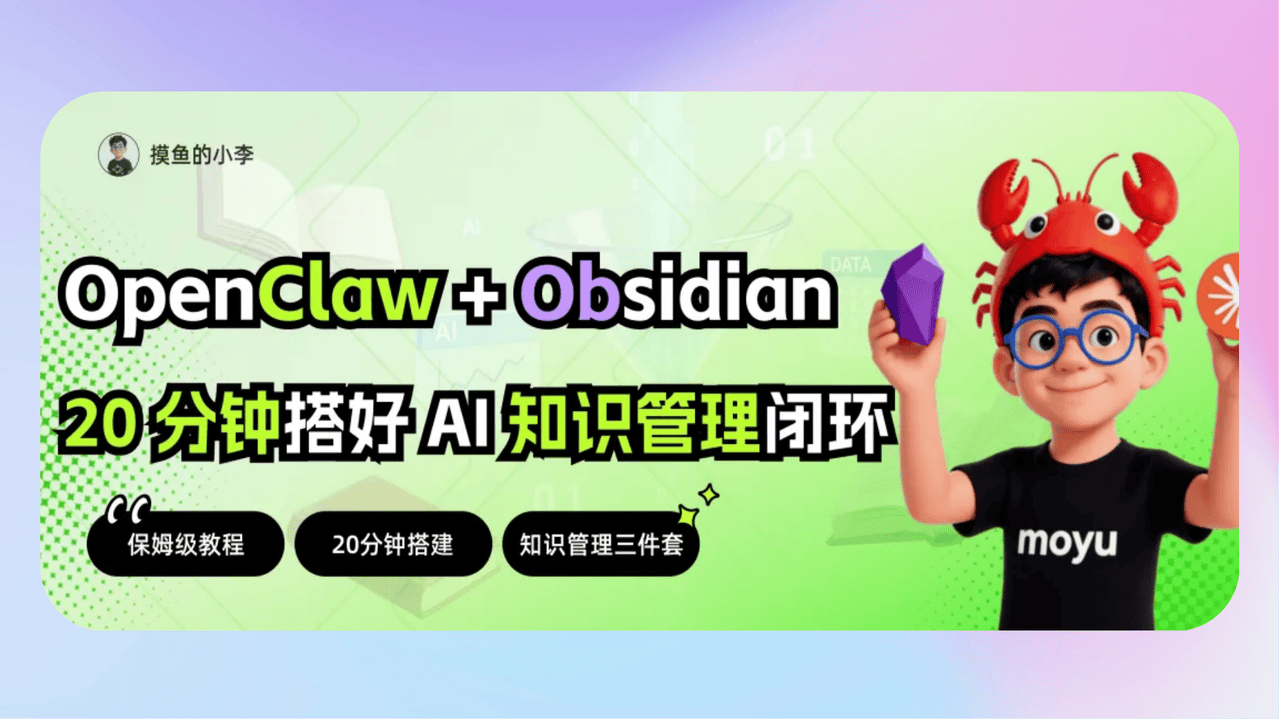 • OpenClaw+Obsidian+CC|才是AI时代知识管理的神(20 分钟装好全套)》OpenClaw+Obsidian+Claude Code 组成的OPC三件套,帮你打通从信息收集到知识分享的完整闭环,轻松把零散信息变成个人智慧。文中提供了超友好的一站式部署教程,而且还能自定义 AI 助手,覆盖笔记拆解、行业调研等真实场景,大幅降低了知识管理与 AI 工具的使用门槛,快来上手试试。 147bc4df-66ce-4f50-ba83-01ef30dfda3a.png