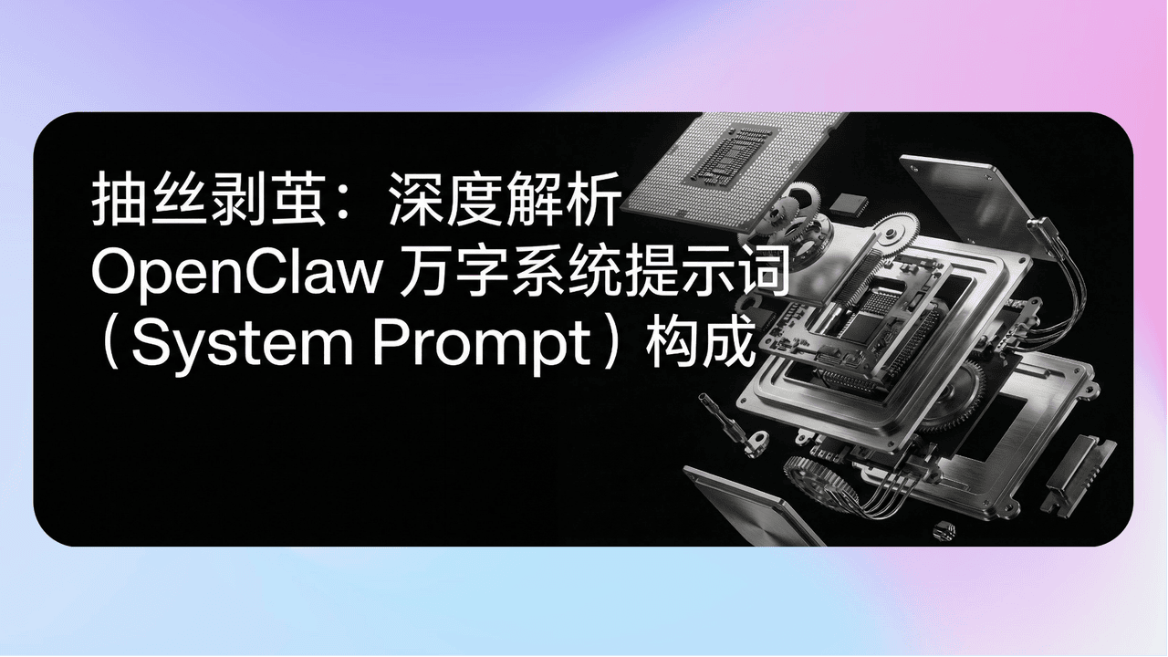 • 抽丝剥茧:深度解析 OpenClaw 万字系统提示词(System Prompt)构成》我们每次发送给openclaw的提示词都是什么?如果你想了解系统提示词,或者想对系统提示词进行瘦身,那么这篇文章或者工具一点可以帮到你!拒绝脑补!作者通过自研代码,把 OpenClaw 发给模型的所有底牌扒给你看, 希望对你有所启发,也能助你更深入了解openclaw ,以及其提示词的构造,为后续优化作为参考! 87554b4c-a079-4a92-9339-452fe117cf3f.png