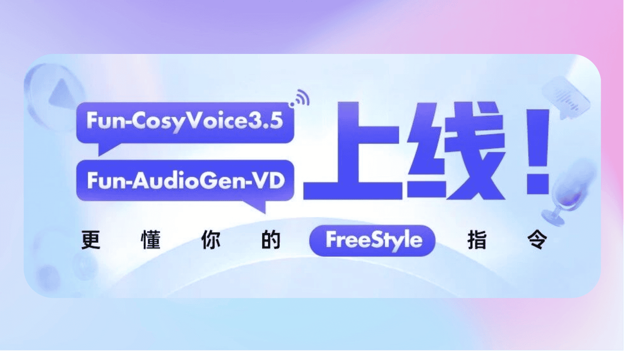 - 《一句话即可自由生成!语音双模型上线》通义实验室语音团队正式发布两款支持 FreeStyle 指令生成 的模型 Fun-CosyVoice3.5 与 Fun-AudioGen-VD 。 无论是 精细控制声音表达 ,还是 从零设计音色与场景 ,都可以通过自然语言指令直接生成。