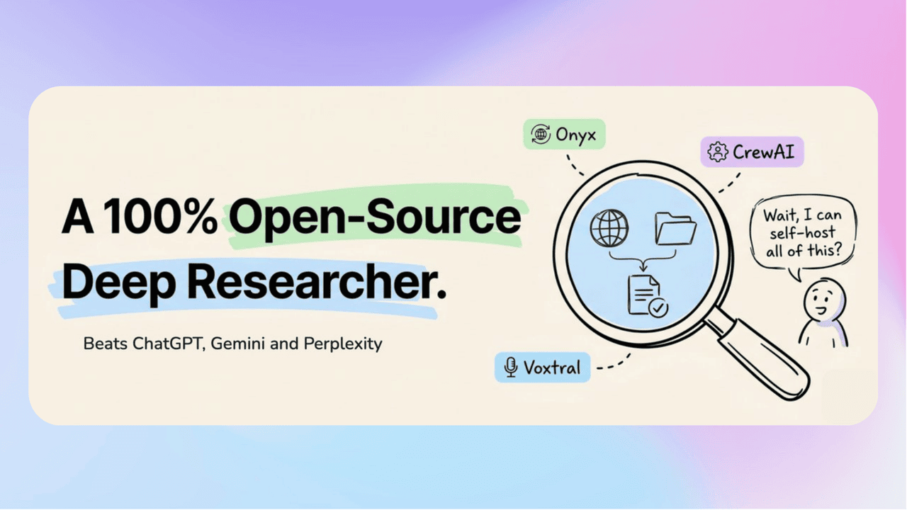 - 《如何构建一个 Deep Researcher(译文)》本篇文章带来一套百分百开源、支持本地自托管的深度研究技术栈。整合Onyx检索、CrewAI流程编排与Voxtral语音能力,通过分层隔离、迭代反思、多维度检索规避幻觉。整套方案代码完全开放、可以自由定制搭建,既能保障数据主权与合规性,又能低成本搭建高质量私有化AI研究工作流,快来上手试试!