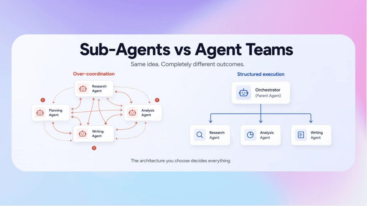 - 《子智能体 vs 智能体团队:颠覆全局的架构抉择》大多数的AI架构设计都存在核心误区,复杂任务盲目堆砌多智能体,反而加剧了协作混乱与信息损耗。本篇文章带你厘清sub-agent与agent teams的底层区别,可以帮助你规避上下文断层、协调成本过高的问题,高效搭建轻量化、高稳定、易维护的智能体系统!