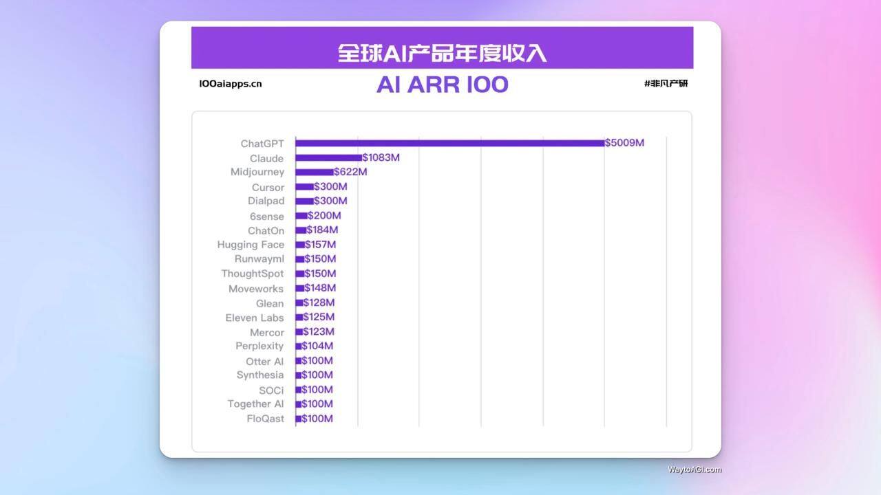 - 非凡产研的新一期榜单发布了《AI智库|月度榜单🏆 (2025-04)》,4 月的生成式 AI 赛道展现了强劲的商业化趋势,ChatGPT 的年收入突破 50 亿美元,引领行业。与此同时,KLING AI 和 manus 等新兴产品凭借快速增速,抢占市场高地。中国 AI 应用出海崭露头角,最高年收入达 1 亿美元。流量转向高频刚需和深度价值驱动,资本降温、产品加速、用户付费三股力量重塑竞争格局。具体可看公众号文章《国产 AI 月活 Top10 全数下跌,可灵AI & Manus海外收入飙升!》