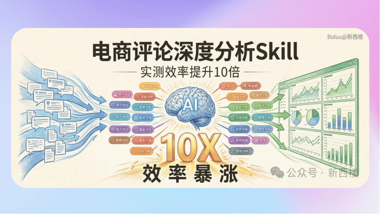 • Blue:终于完成了!实测效率提升10倍,电商评论深度分析Skill已就位!》前段时间作者分享了电商评论深度分析的n8n工作流,当时说要把这个工作流升级成 Skill。今天,终于把这个坑填上了。专为电商场景设计的 AI 评论洞察分析工具—Review Analyzer Skill,已经发布并开源在GitHub上了。目前 1.0 版本仅支持在 Claude Code 中运行,下个版本会支持 openclaw、opencode 等更多平台。 ddbd3b12-b04e-4f49-97b7-69cacc65f90c.png